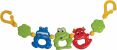 Оригинальная погремушка на коляску с красной коровкой, синим бегемотиком и зелёным лягушонком доставят множество положительных эмоций малышу на прогулке.